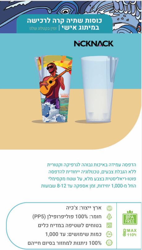 עוברים לכוסות רב פעמיות ! שותים ונהנים מחוף נקי ללא פסולת. הכוס עומדת בסטנדרטים ובתקנים הבינ”ל הגבוהים ביותר., מיועדת לעד 1000 שימושים חוזרים ושומרת על הסביבה